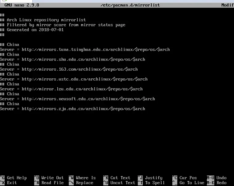 nano /etc/pacman.d/mirrorlist 修改下镜像源 把china源都放在最前面