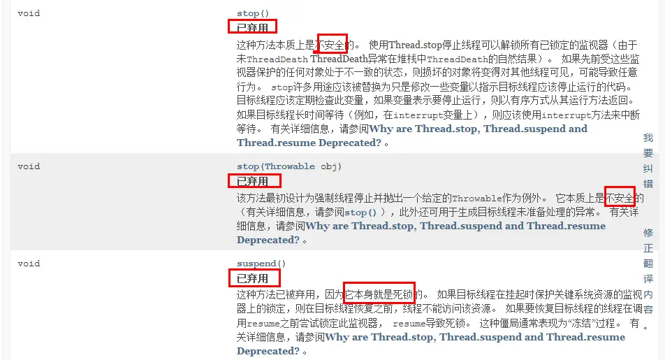 stop(),suspend(),resume()(仅用于与suspend()一起使用)这些方法已被弃用,所以我这里不予讲解。