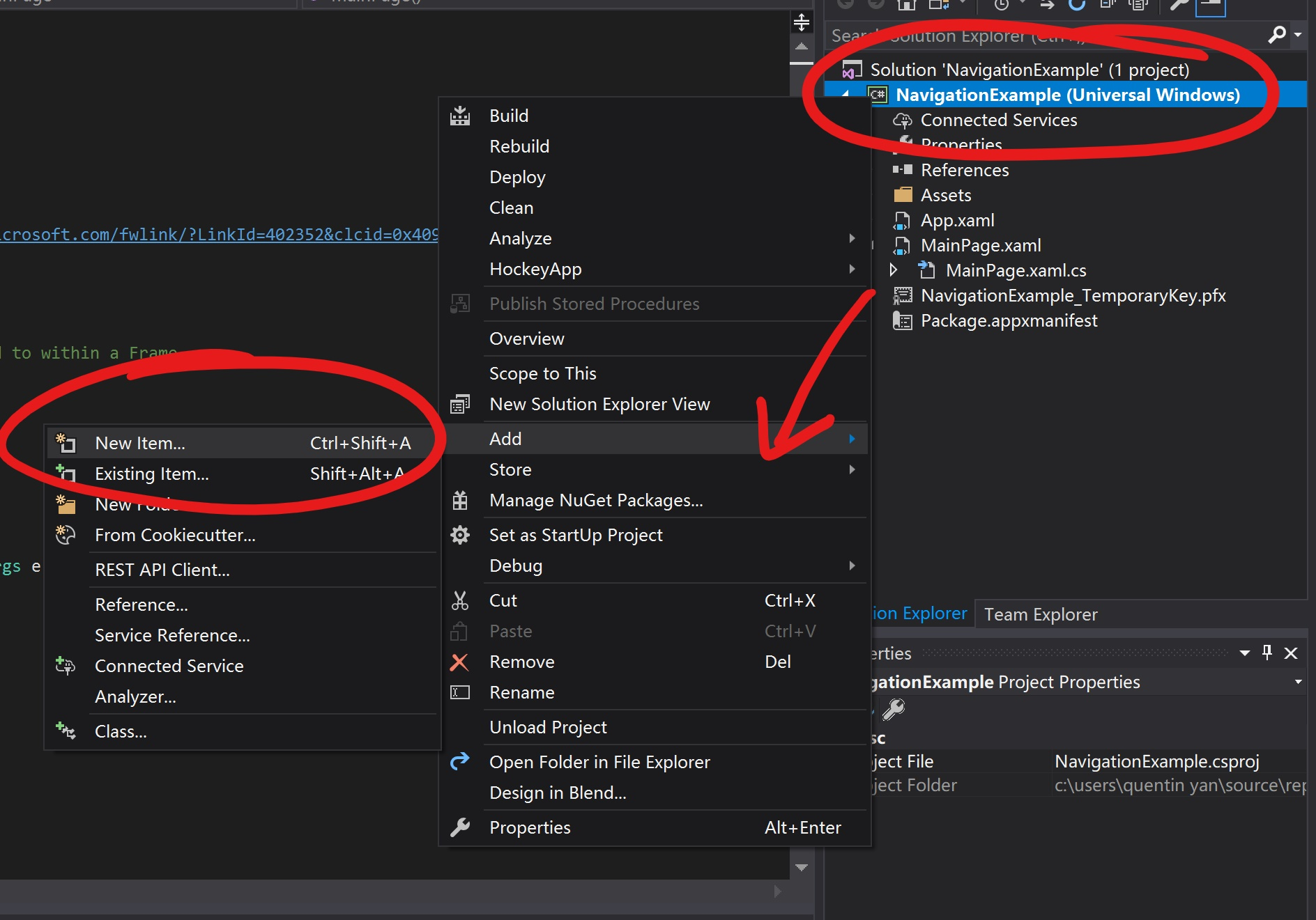 MainPage.xaml和MainPage.xaml.cs两个文件中的设置暂告一个段落。我们现在需要新建一个页面。-