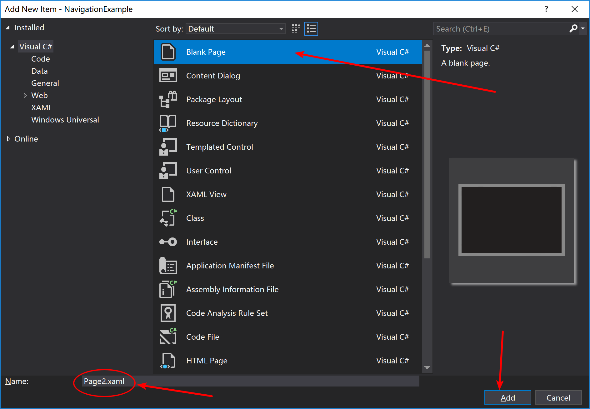 <StackPanel> <TextBlock Text="This is Page 2" Foreground="Brown" FontSize="30"/> <Button Content="Click to navi to page 1" FontSize="30" Click="Button_Click"/> </StackPanel> -