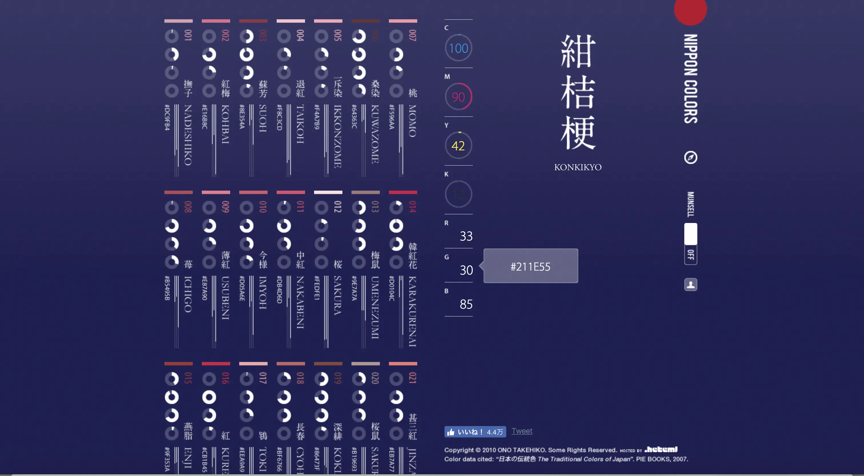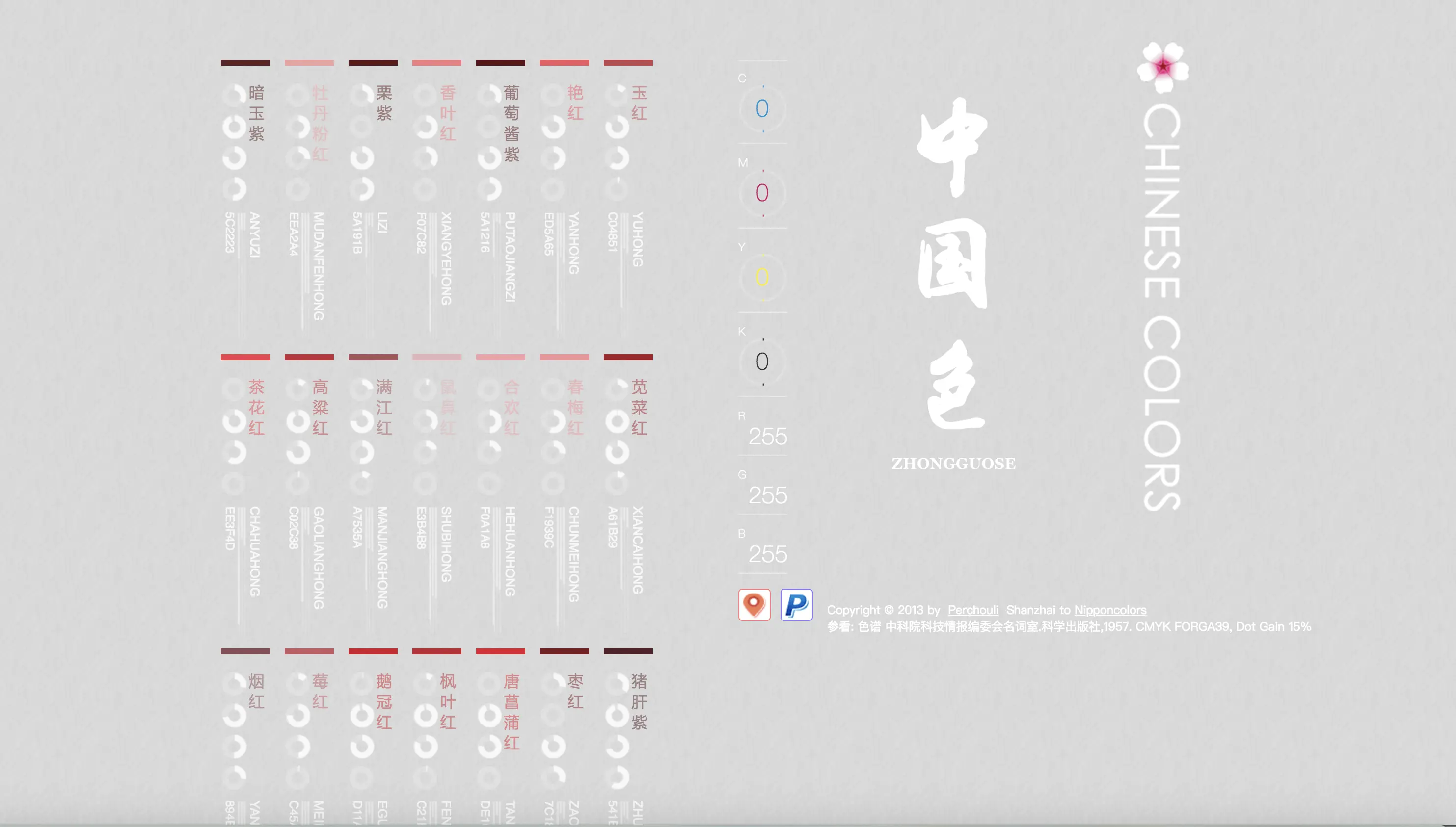 超美的中国风配色,网站号称收集了最全的中国色,还有中英文互译,非常贴心,五星好评。