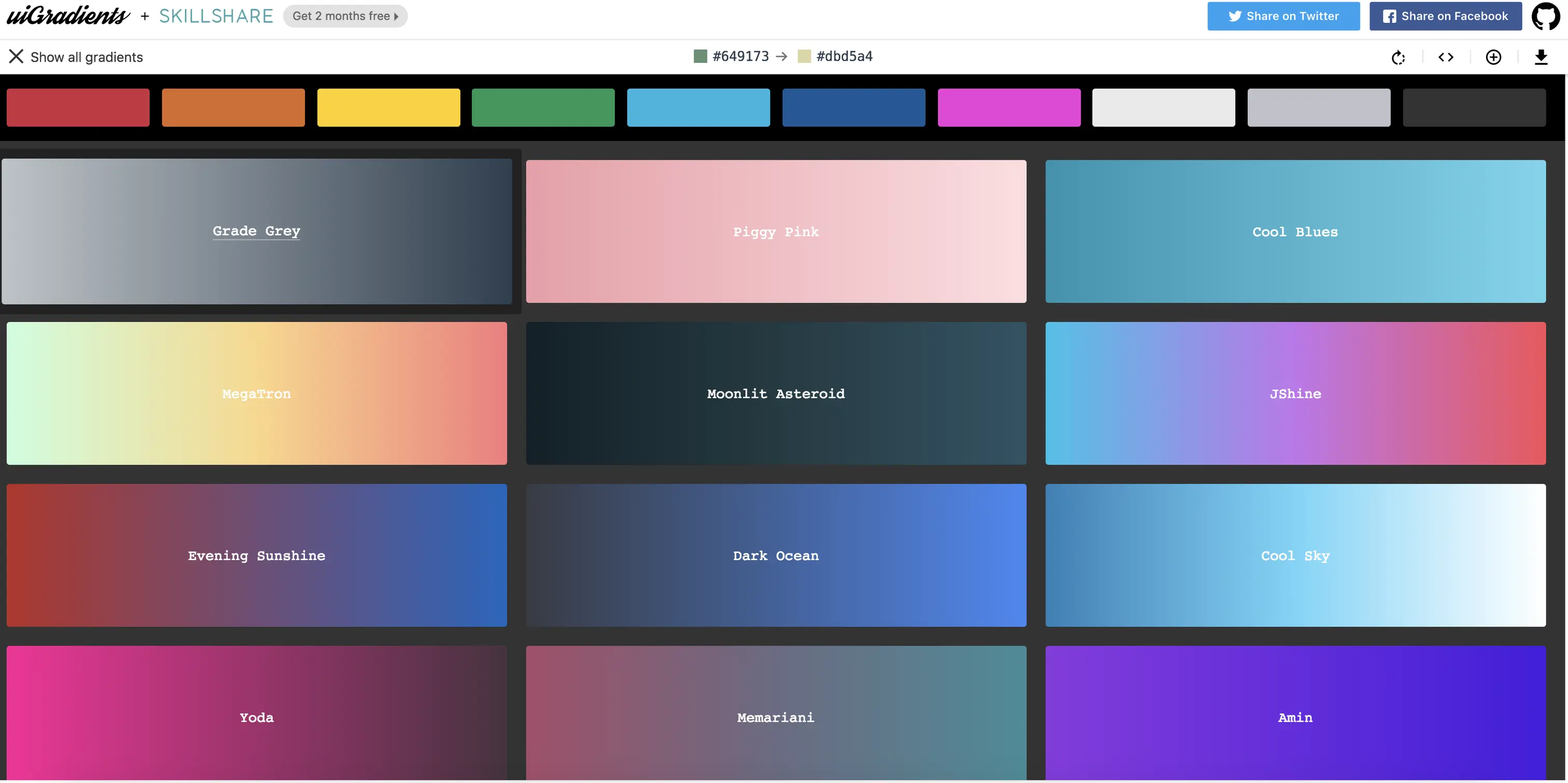 做渐变配色专用的网站,色值什么的非常全。每个颜色还有一个超美的名字,来来感受一波~