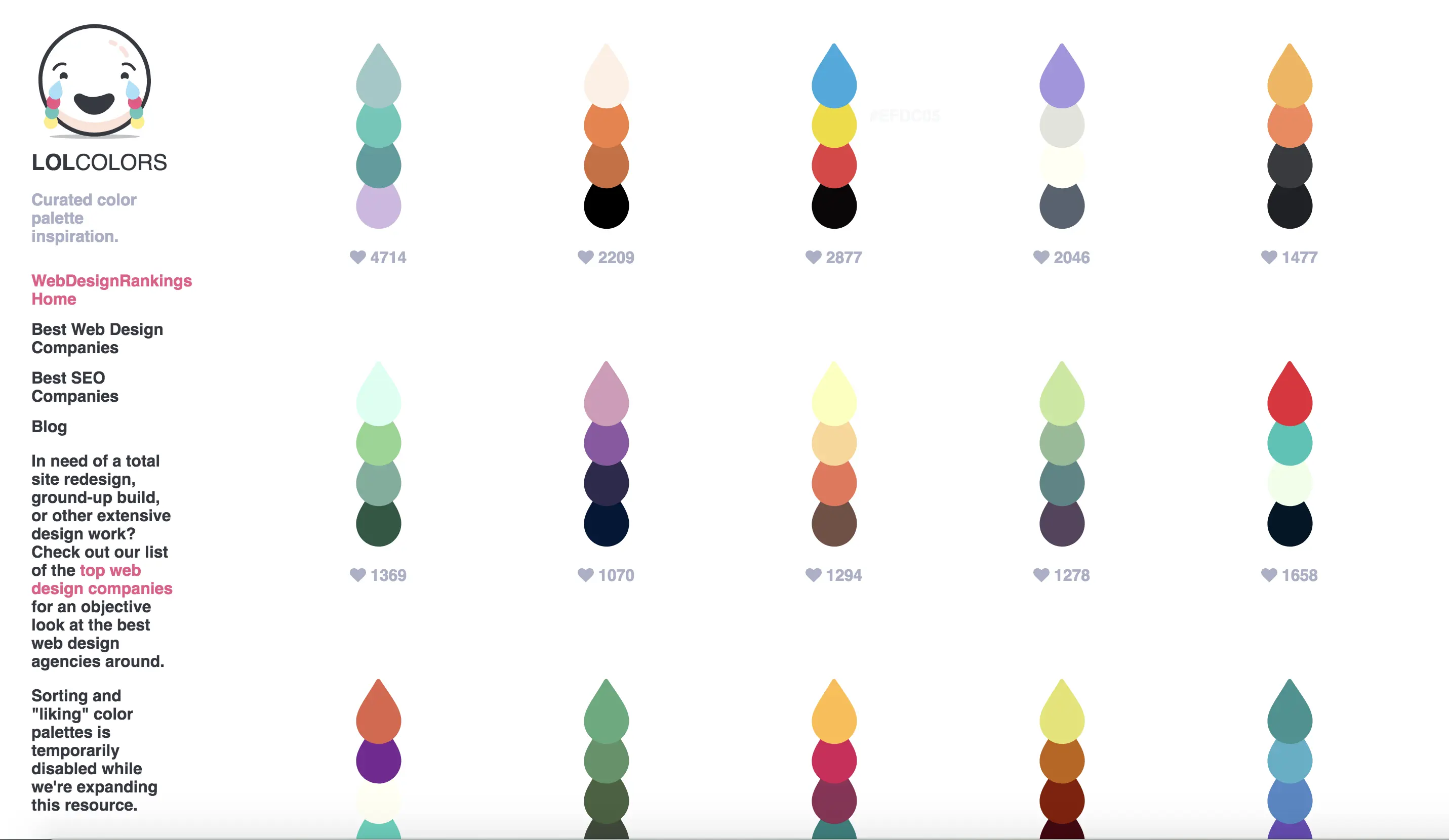 网站实时更新不同的配色方案,并会按照受欢迎程度排列。
