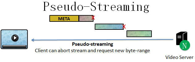 在渐进式下载的基础上,pseudo-streaming(伪流)出现了,其增强了seek播放功能,也就是支持直接切到未下载的地方进行观看,所以也可以称之为渐进式播放。