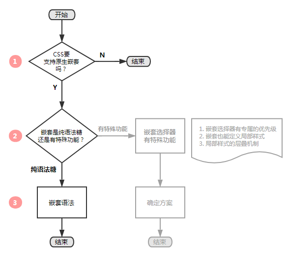 其实,早在2014年4月3日,W3C 就发布过一个 CSS范围(scoping)模块 的工作草案;2015年9月23日,谷歌的工程师 Tab Atkins 也发布过一个 CSS嵌套模块 的编辑草案。那个时候,CSS 工作组也讨论过嵌套的问题,但并未通过社区的同意(见会议纪要)。