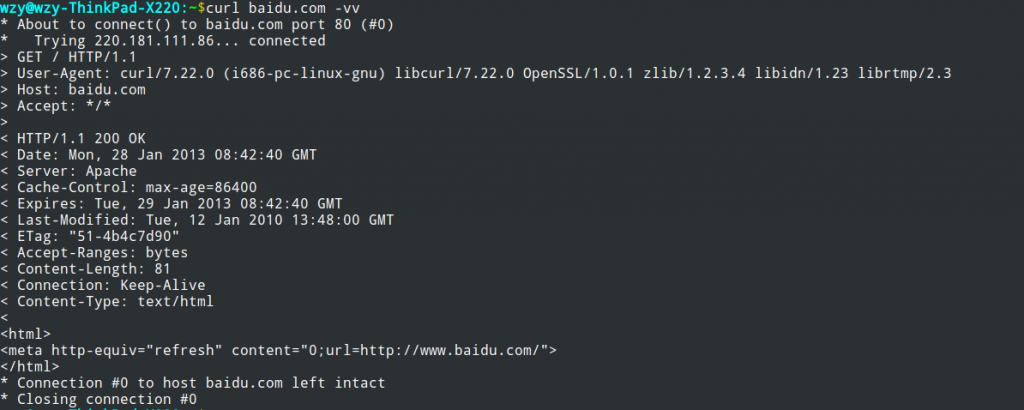 上述两种方法均会耗费服务器的资源,我们用curl访问baidu.com试一下,看百度的公司是如何实现baidu.com向www.baidu.com的跳转