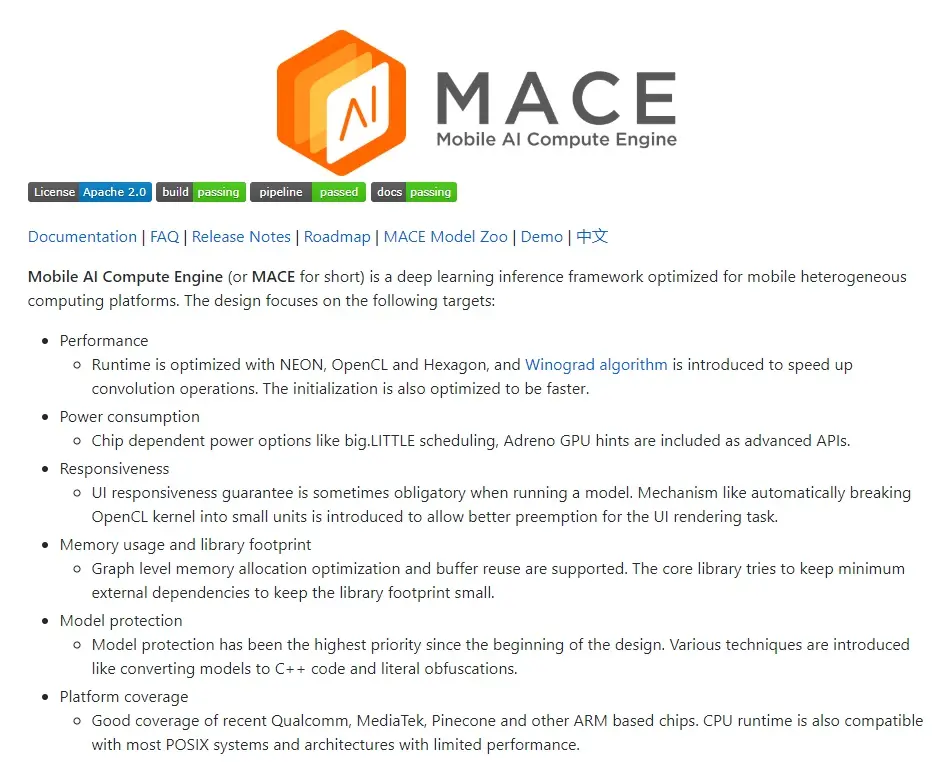 Mace:小米开源的面向移动计算平台的深度学习框架。[GitHub上2182个star]