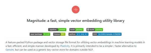 Magnitude:一个快速简单的向量嵌入实体库。[GitHub上434个star]