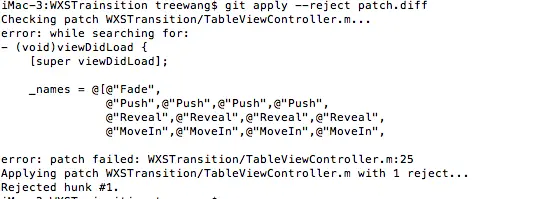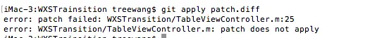 在打补丁过程中有时候会出现冲突的情况,有冲突时会打入失败,如图: