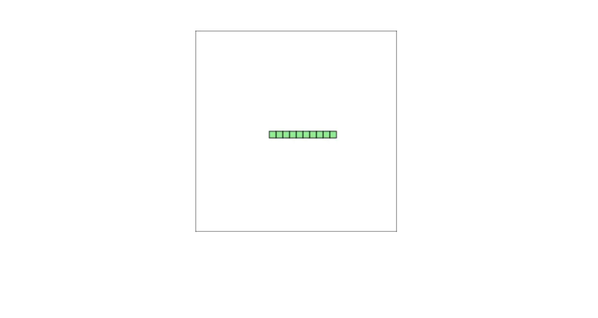 注意蛇所有部位的 y 坐标都是 150。每一部位的 x 坐标比(左边)前一个部位多 10 px。数组中的第一对坐标 {x: 150, y: 150} 表示蛇头,位于蛇的最右边。