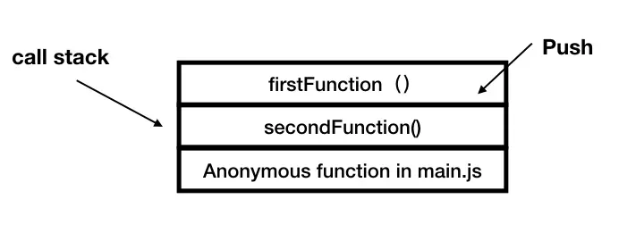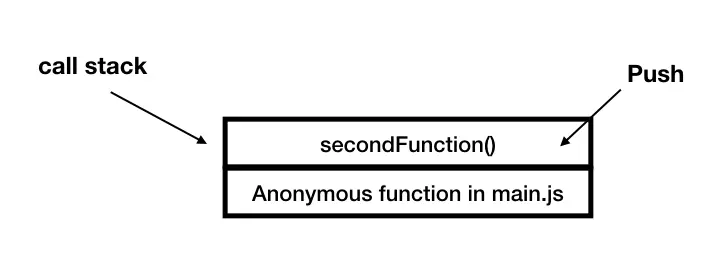 - js引擎从上往下遍历,要执行的代码是secondFunction(),将其放入call stack中: