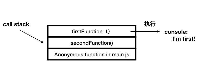 - 放入之后就执行这个函数,这个函数执行又调用了firstFunction(),将其放入执行栈中:
