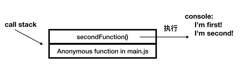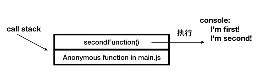- 继续执行secondFunction()后面的代码控制台输出"I'm second!":