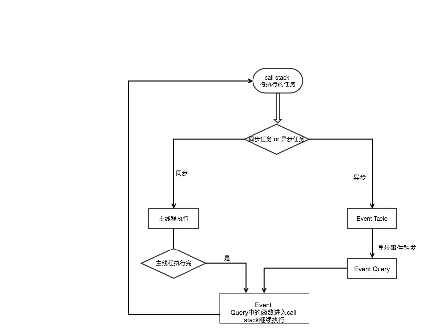 在主线程的执行过程中,Event table一直会监听是否有特定事件触发,然后将回调放入到Event Queue中。 同时事件循环机制会监控call stack是否为空, 如果为空就会将Event Queue中的回到函数推入一个新的call stack中,重新又开始一轮主线程执行。