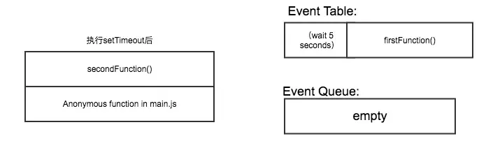 setTimeout执行完之后,setTimeout推出call stack回调函数firstFunction会放入到EventTable中。