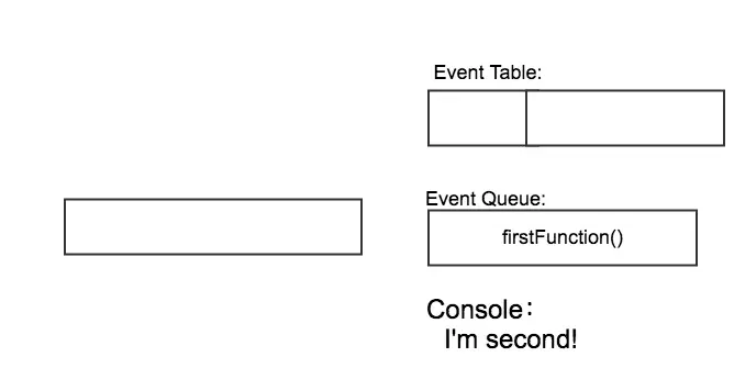 5s时间到了,Event table监听到了这个事件,将对应的回调函数firstFunction放入到Event Queue中: