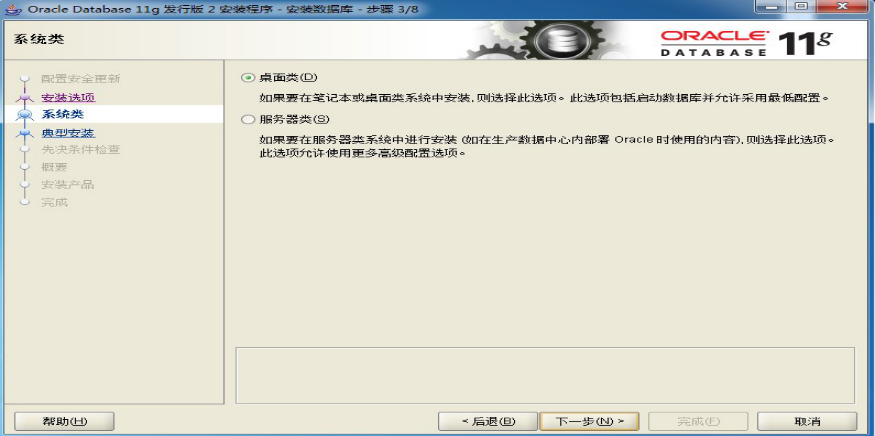 5、在“系统类”窗口中,选择“桌面类”,单击“下一步”: