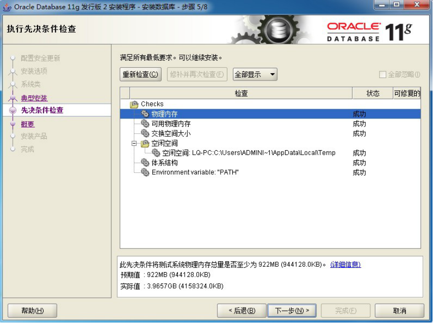 7、在“先决条件检查”窗口中,单击“下一步”: