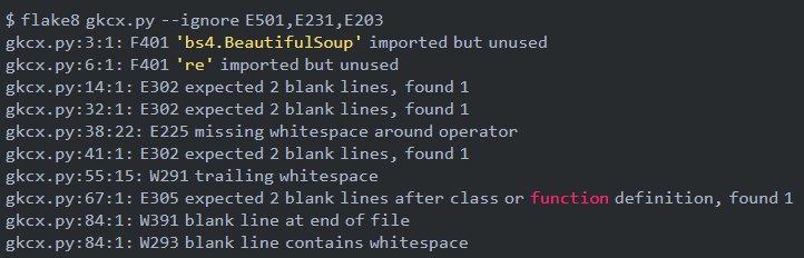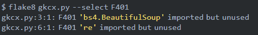 F***:通过 PyFlakes 检测出的 error,其实 PyFlakes 本身是不提供错误返回码的,flake8 对 pyflakes 返回的错误消息进行了分类。 -