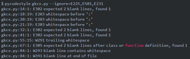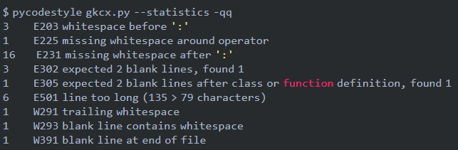 $ pycodestyle [file name or directory name]