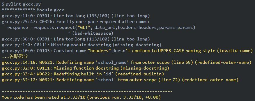 本文使用之前文章 Python 助你填写高考志愿 中的代码作为测试代码。另外有些输出过长的,进行了截取。