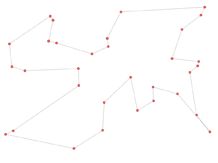 由于是随机生成的,这个路线在图上看起来可能一团糟: