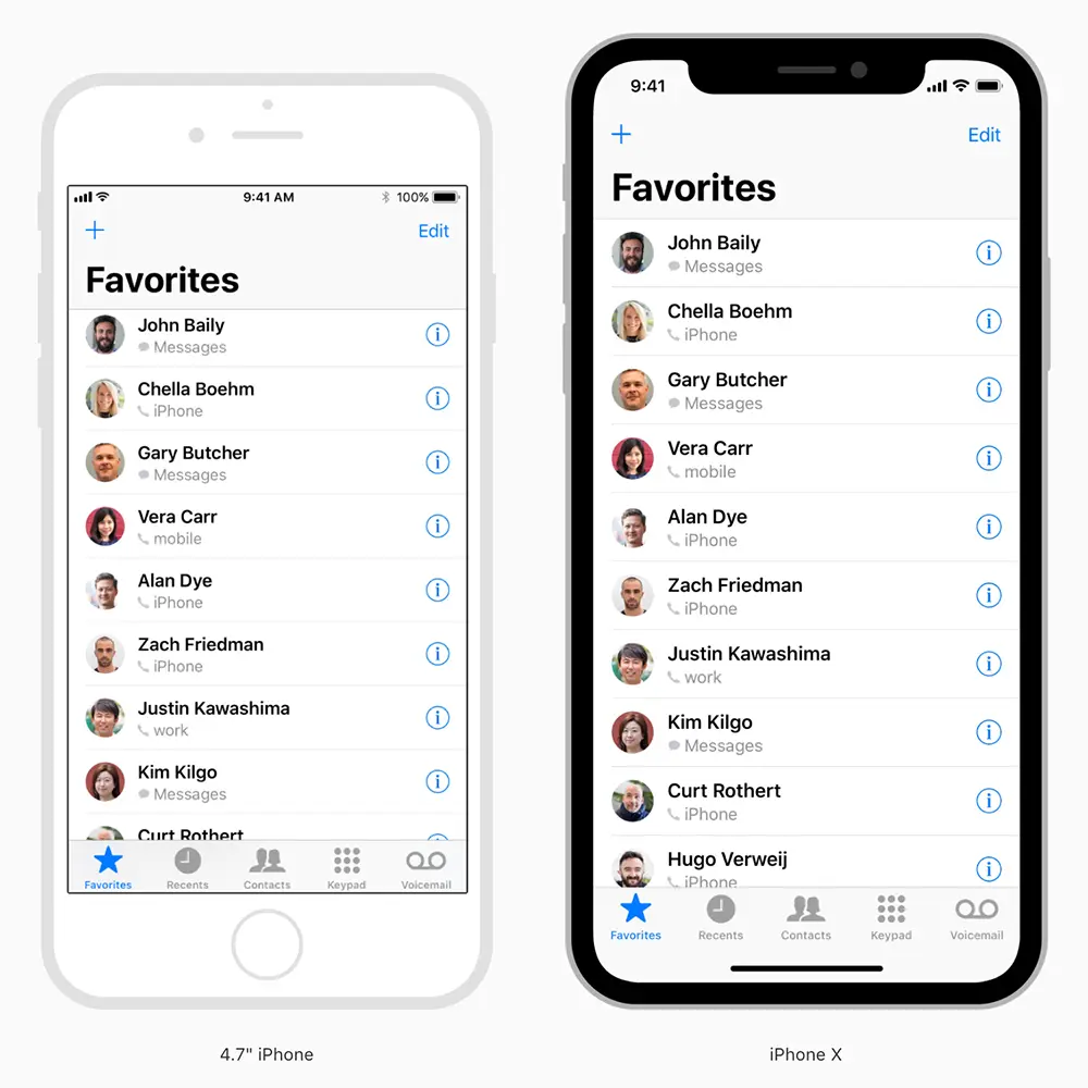 所以在 iOS App 开发中,如果我们使用系统默认的 UINavigationController 和 UITabBarController 时,则无需额外的适配工作,iOS 系统会自动适配好相关 Bar 的安全区域问题。如果我们使用了自定义的导航栏和标签栏,则需要注意根据设备类型区分设置这些 Bar 的不同高度。