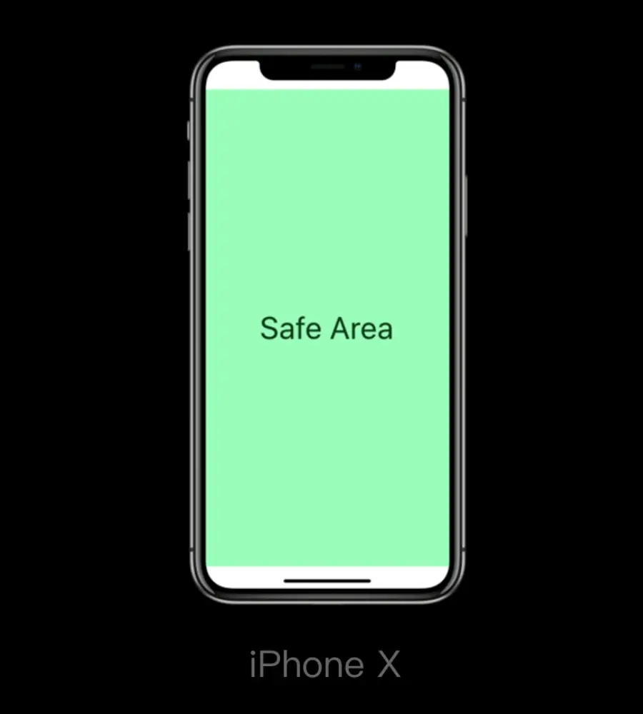此外,由于在 iPhone X 屏幕顶部状态栏区域有“齐刘海”,以及在屏幕底部增加了“操作条”,如下图所示,因此,我们在开发中需要注意安全区域的问题。