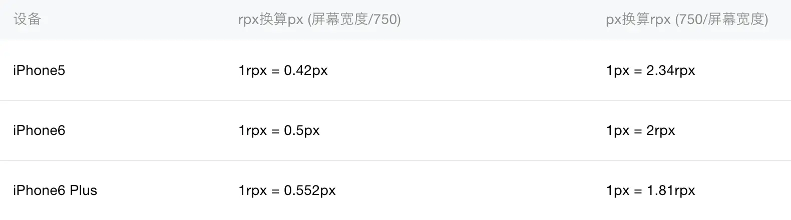 为了解决不同屏幕尺寸的适配问题,小程序自己定了一个尺寸单位:rpx(responsive pixel),它可以根据屏幕宽度进行自适应。小程序中规定,所有设备的屏幕宽度都为 750rpx,根据设备屏幕实际宽度的不同,1rpx 所代表的实际像素值也不一样。