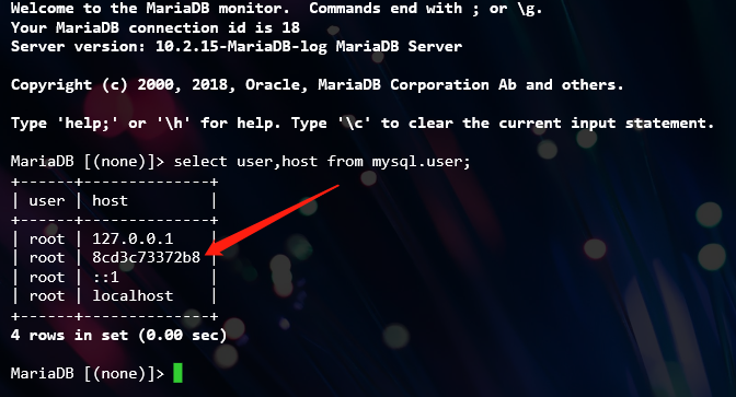 select user,host from mysql.user;登录后查看 ,