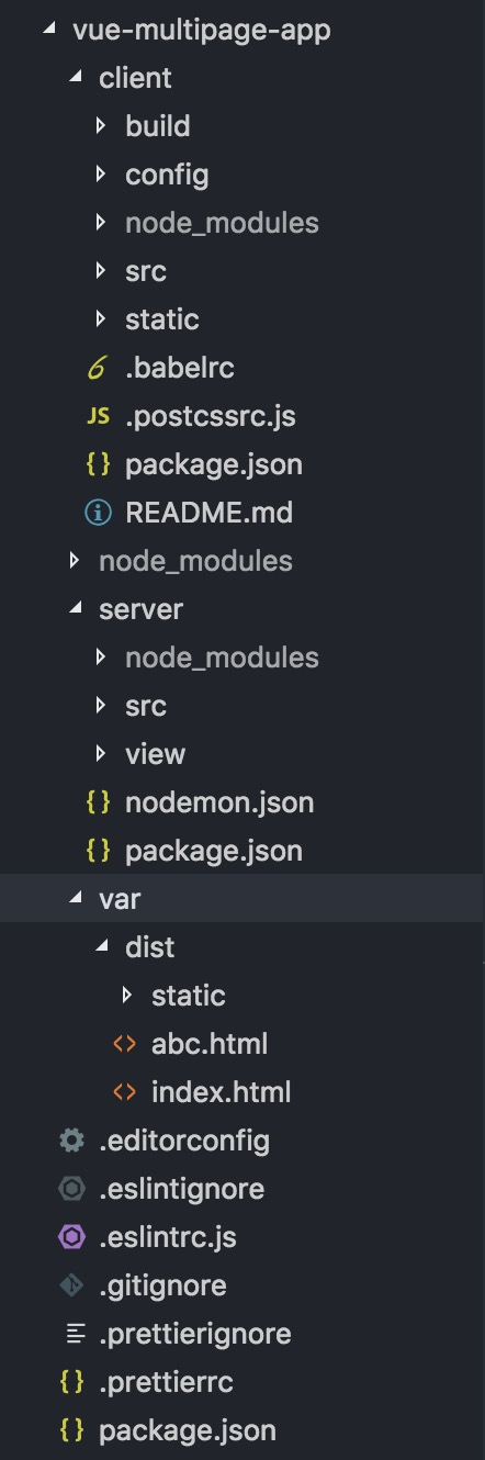markdown 要贴目录树结构有点麻烦,这里直接就贴图了,又或者你可以直接在这里看 vue-multipage-app