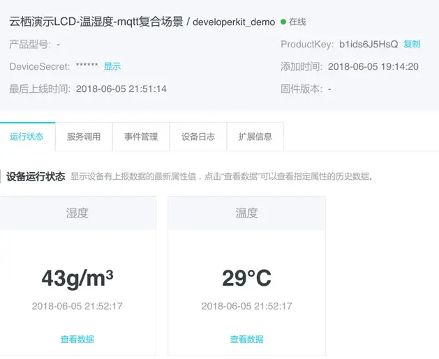 本例使用已移植 AliOS Things 的 Developer Kit 开发板作为开发硬件,实现板载温湿度传感器上报 Link Develop 云端,并通过 Web App 展示。