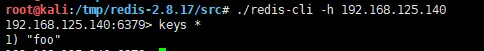 root@kali:/tmp/redis-2.8.17/src# ./redis-cli -h 192.168.125.140