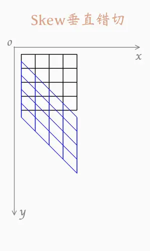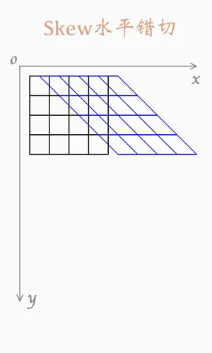 错切存在两种特殊错切,水平错切(平行X轴)和垂直错切(平行Y轴)。