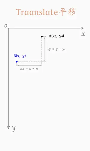 你可能注意到了,我们坐标多了一个1,这是使用了齐次坐标系的缘故,在数学中我们的点和向量都是这样表示的(x, y),两者看起来一样,计算机无法区分,为此让计算机也可以区分它们,增加了一个标志位,增加之后看起来是这样: