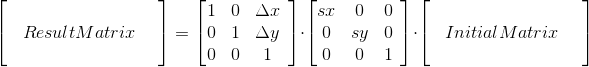 设原始矩阵为 M,平移为 T ,旋转为 R ,单位矩阵为 I ,最终结果为 M’