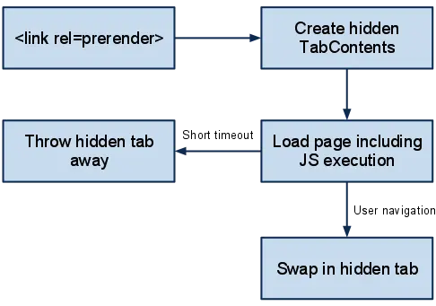 "prerender 提示可以用来指示将要导航到的下一个 HTML:用户代理将作为一个 HTML 的响应来获取和处理资源,要使用适当的 content-types 获取其他内容类型,或者不需要 HTML 预处理,可以使用 prefetch。—— W3C"