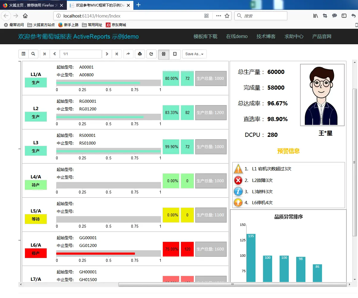 例图:MVC 平台下ActiveReports 利用HTML5Viewer 加载以及显示报表