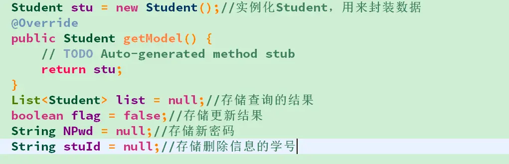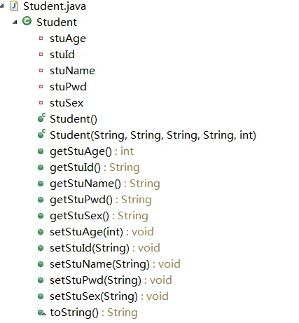 实体类:定义Student类所需要的数据,并设置set&get方法,构造方法,重写toString方法等