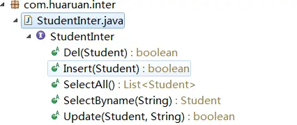 接口包括对student表的增删改查和查全部。工厂类用来获得具体操作实现类。
