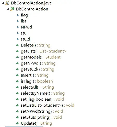 其中有两个Action,分别是loginAction和DbAction,分别完成对登录的控制和对数据库操作的控制(增伤改查)