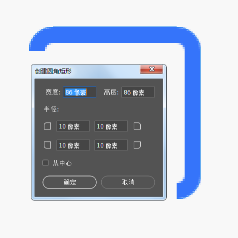 我在这个矩形上右键单击,跳出来对话框"创建圆角矩形" 。发现,宽度和高度并没有发生变化。