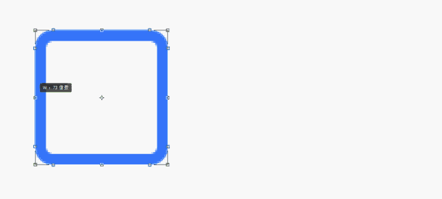 我画了一个圆角矩形,蓝色的描边,填充为空,然后删除了不需要的地方。然后,我做了一个水平翻转。这个时候,神奇出现了:它竟然变大了!