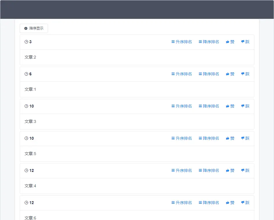demo功能是文章点赞排名等等,整个demo的大致页面如下。