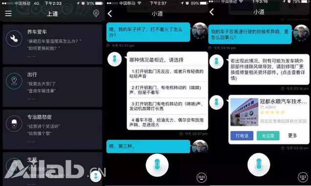 同时,还有配套的基于微信的问答类产品上道题。上道题是一款基于微信的语音、文字问答类产品,从汽车故障、使用常识、美容改装、汽车用品、新车选购、二手车选购、保险相关等各方面给用户提供收费和免费的问答服务。