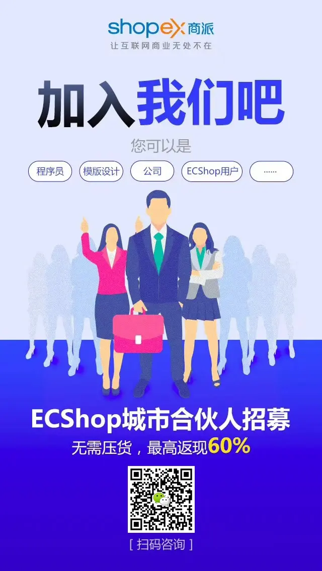 Ecshop免费招募合伙人啦!快跟我们撸起袖子一起干吧!