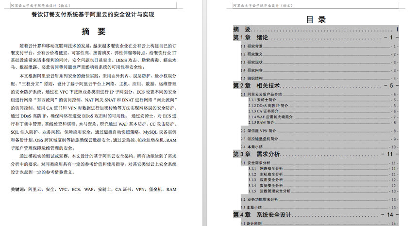 周祥的云学院云安全专业毕业设计论文—《餐饮订餐支付系统基于阿里云的安全设计与实现》