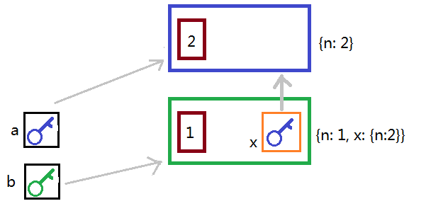 即建了一个是{n: 2}这种样子的房子,然后把钥匙放到盒子a里面。