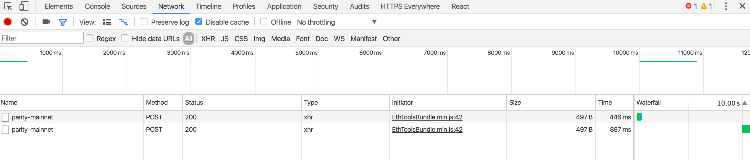 在客户端中与区块链交互的一件大事是,在任何情况下,任何人都能清楚地看到你在做什么。他们可以自信地知道你没有把他们的私人钥匙发送给别人。怎样?他们可以查看控制台并查看每一个发出的请求。