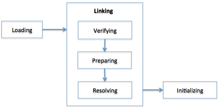 Loading:文章前面介绍的类加载,将文件系统中的Class文件载入到JVM内存(运行数据区域)